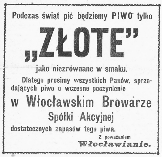 Włocławek ze względu na swoje położenie na brzegu rzek Wisła i Zgłowiączka obwity był w różnego rodzaju płody rolne. Z tego względu browarnictwo prężnie rozwijało się w naszym regionie. Może być to dla wielu zaskoczeniem, jednak pod koniec XVI wieku Włocławek był miastem, które słynęło z wyrobów alkoholowych. Jak pisał poeta Sebastian Klonowic w poemacie „Flis”: