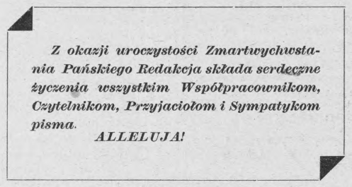 Wielkanoc w roku 1925 była niezwykła, bowiem to dopiero siódmy rok po odzyskaniu przez Polskę niepodległości po 123 latach. Z tego względu święto to miało dla Polaków jeszcze większe znaczenie, gdyż motyw zmartwychwstania Jezusa Chrystusa odnoszono do zmartwychwstania Polski i narodu polskiego. Porównanie to nie raz pojawiało się i w naszej lokalnej prasie na przestrzeni lat, jak np. w „Słowie Kujawskim”.1 W roku 1925 Wielkanoc przypadła na 12 kwietnia (niedziela) oraz 13 kwietnia (poniedziałek).